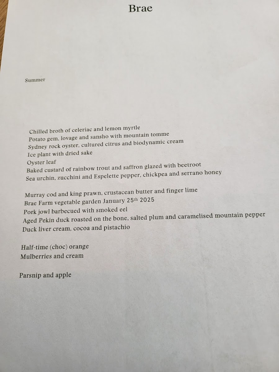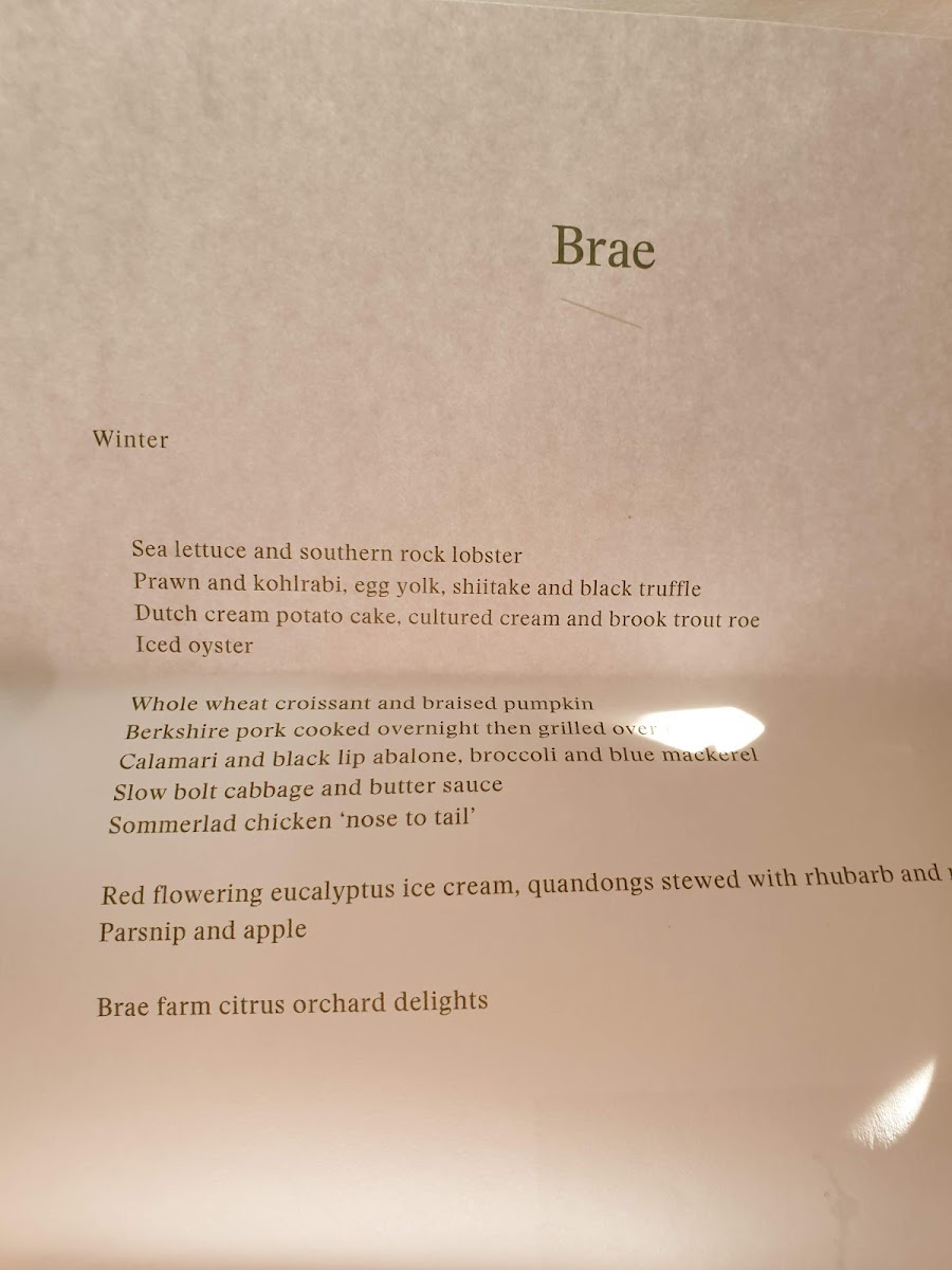 The autumn selection features creative dishes such as Brae Farm Vegetables and Grilled Green Tomato Juice, and Smoked Eel Doughnut, all artfully crafted to highlight vibrant flavors and textures. Desserts like Strawberry Gum Ice Cream and Frozen Passionfruit promise to tantalize your palate, ensuring a memorable conclusion to the dining experience.